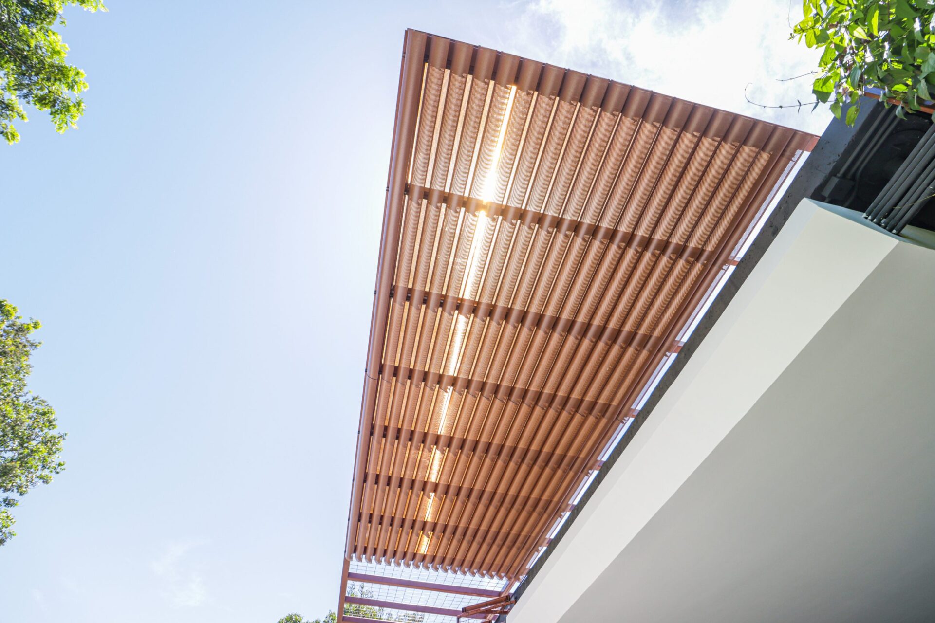 El cortasol Celoscreen es una solución al control solar pasivo, compuesto por paneles y portapaneles en aluzinc prepintado y en acabados liso o perforado.